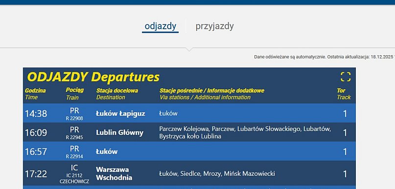 Internetowy rozkład jazdy stacji PKP Radzyń-Bedlno
