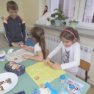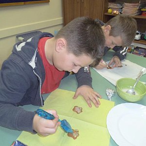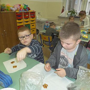 Uczniowie klasy I b z SP w Białce wzięli udział w zajęciach przeprowadzonych w grupach. Na początku ćwiczyli umiejętności polonistyczne, później przystąpili do świątecznego dekorowania pierniczków. Po udekorowaniu ciasteczek dzieci samodzielnie dokonały oceny swojej pracy. Zajęcia zakończyły się słodką degustacją pierniczków.