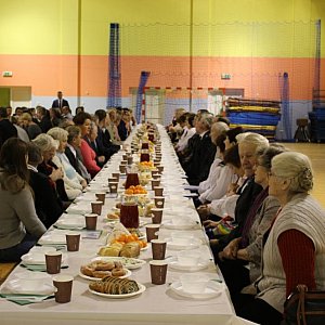 Ksiądz Tadeusz Kot, Proboszcz Parafii Kolembrody odczytał Ewangelię o Narodzeniu Pańskim, a Wójt Gminy Ireneusz Demianiuk i Dziekan Parafii Ksiądz Mieczysław Pociejuk przywitali przybyłych Mieszkańców Gminy i złożyli oficjalne życzenia Bożonarodzeniowe. Wspólnie odśpiewano Kolędę..Bóg się rodzi" i podzielono się opłatkiem. Po wzajemnych życzeniach można było usiąść do stołu by skosztować potraw wigilijnych. Wspólne kolędowanie uwieńczyło Spotkanie Opłatkowe.