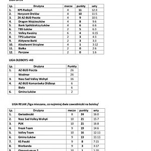 W Lidze Relax trochę się namieszało. Liderem są już niepokonane Gwiazdeczki, ale w walce o kolejne miejsca wszystko dopiero się rozkręca. Tu każdy wygrywa z każdym. Nasz Sad Volley Wohyń, PUK i Freak Team tworzą grupę "goniącą" lidera równocześnie walcząc o miejsca na podium. Mecze w lutym i marcu zadecydują o tym, kto dołączy jeszcze do czołowej piątki. W kwietniu natomiast w "dogrywce" najlepsze drużyny zagrają dodatkowe mecze między sobą o miejsca 1 - 5, pozostałe natomiast o miejsca 6 - 9.