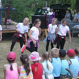 Imprezę oficjalne rozpoczęli przewodnicząca Rady Rodziców, pani Katarzyna Czyżak oraz dyrektor ZPO w Borkach, pan Roman Pawelec. Pierwszym punktem programu były występy artystyczne głównych bohaterów czyli dzieci - uczniów naszej szkoły oraz zaproszonych przez nich gości. Grupa taneczna, prowadzona przez Julię Smogorzewską (GOKiS w Borkach z/s w Woli Osowińskiej), zaprezentowała swoje umiejętności w tańcu nowoczesnym.