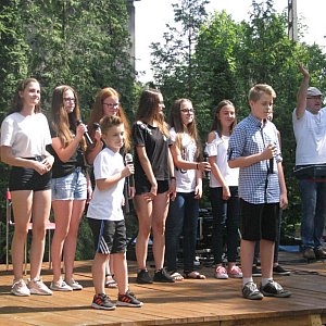 Potem był monolog szykującej się na festyn mamy (Natalia Obroślak), skecz "rodzinny" (Marta Sokół, Oliwia Rolak oraz Adrian Bober) oraz piosenka wprowadzająca w festynowy nastrój (Damian Parysek, Kamil Mitura oraz chórek klas VIa i VIIa). Z kolei przedszkolaki wystąpiły z piosenką "Moja mama jest kochana, a uczniowie klas Ia i Ib zaśpiewali "Wesołą rodzinkę" - oba występy nagrodziły zasłużone brawa. Ponownie na scenie pojawił się Damian Parysek z utworem "Nie mów mi nie". Alicja Kożuch (pianino) zaprosiła do wspólnego występu Natalię Dyjak i Annę Lipińską (skrzypce) - trio wykonało trzy utwory instrumentalne. Także instrumentalną wersję (flety) przeboju z filmu "Titanic" wykonali uczniowie klasy VIIa. Na zakończenie prezentacji wystąpiły Agata Adameczek, Monika Trojak i Ola Blicharz z klasy IIIA gimnazjum, które zaśpiewały i wytańczyły przebój Abby "Mamma mia". To nie był koniec występów naszych uczniów. Pojawili się w kolejnych pokazach: tańca nowoczesnego grupy Show Dance pod kierownictwem pani Joanny Pastuszewskiej, zumby (GOKiS i pan Paweł Jabłoński), taekwon - do Radzyńskiego Sportowego Centrum Taekwon-Do. Dla dzieciaków i tych małych, i tych dużych (czyli rodziców...) wszystkie te występy stanowiły wielką atrakcję, zwłaszcza pełna żywiołowej energii zumba czy robiące wrażenie wyczyny zawodników taekwon-do.