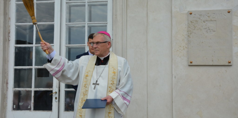 Następnie poproszono najmłodszych mieszkańców miasta o uroczyste odsłonięcie tablicy pamiątkowej. Następnie biskup siedlecki Kazimierz Gurda poprowadził krótką modlitwę i poświęcił tablicę.