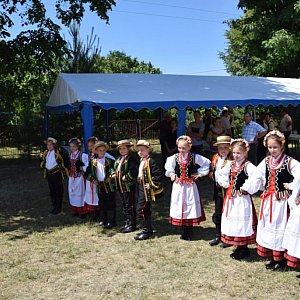 Uroczystość rozpoczęła Dziecięca Grupa Tańca Ludowego ,,Borkowiaczek``, która w wyjątkowo uroczy sposób tańczyła w słońcu gubiąc elementy garderoby... Na scenie pokazała się również nasza ,,Mięta`` w repertuarze ludowym. Ponieważ Spotkania z Pieśnią i Tradycją Weselną obchodziły 10 urodziny, nie zabrakło miłych słów , wzajemnych podziękowań i słodyczy... W zmaganiach o statuetkę Jaśka Muzykanta zaprezentowało się 12 zespołów: