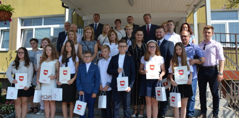 Uroczystość zgromadziła uczniów, rodziców, uczniów i dyrektorów szkół podstawowych i gimnazjów podległych Miastu. Pamiątkowe odznaczenia i upominki uczniom wręczał burmistrz Jerzy Rębek, a listy gratulacyjne dla rodziców przewodniczący Rady Miasta Adam Adamski.
