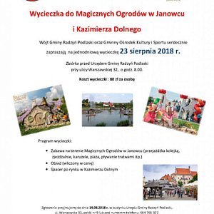 W minioną środę, tj. 8.08.2018 br. odbyła się jednodniowa wycieczka do Woli Gułowskiej i Woli Okrzejskiej, zorganizowana przez Wójta Gminy Radzyń Podlaski Wiesława Mazurka oraz Gminny Ośrodek Kultury i Sportu, na którą wybrali się wszyscy chętni mieszkańcy gminy.