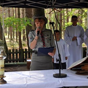 Mszy Świętej przewodniczył ks. Michał Gosk - Ojczyzna - kiedy myślę - wówczas wyrażam siebie i zakorzeniam, mówi mi o tym serce, jakby ukryta granica, która ze mnie przebiega ku innym, aby wszystkich ogarnąć w przeszłość dawniejszą niż każdy z nas: z niej się wyłaniam... Gdy myślę Ojczyzna - by zamknąć ją w sobie jak skarb. Pytam wciąż, jak go pomnożyć, jak poszerzyć tę przestrzeń, którą wypełnia. Tymi słowami poezji nasz święty rodak Jan Paweł II mówił o tym, nad czym chcemy się dziś zatrzymać. Świętujemy i naszą modlitwą otaczamy Harcerzy Radzyńskich pomordowanych w 1940 roku przez Niemców wraz ze swoim komendantem harcmistrzem Michałem Stefanem Lisowskim w czerwcu 1940 roku.