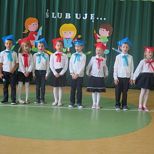 Najważniejszym momentem tego podniosłego wydarzenia było złożenie przez dzieci ślubowania oraz pasowanie - pierwszoklasiści zostali oficjalnie włączeni do grona uczniów Szkoły Podstawowej w Domaszewnicy. Również przedszkolaki obiecały: mieć roześmiane buzie, nie płakać, szanować zabawki, grzecznie się bawić oraz wszystko zjadać z talerzyka, a ich rodzice złożyli przysięgę na super rodzica. Wszystkie dzieci otrzymały pamiątkowe dyplomy i upominki oraz zestaw gier dydaktycznych. Pierwszoklasiści tradycyjnie przekazali krzew ozdobny, który zostanie posadzony w ogrodzie szkolnym.