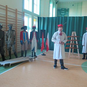 Przybliżono uczniom losy Rzeczpospolitej w latach 1772-1921, w tym czasy zaborów, powstań: kościuszkowskiego, listopadowego i styczniowego, I Wojny Światowej oraz Odzyskania Niepodległości. Podczas pokazu uczniowie byli aktywnie angażowani w scenki: wcielali się w rolę znanych postaci historycznych, mieli możliwość wzięcia udziału w elementach rekonstrukcji bitewnych, np. na szable, bagnety czy kosy. Z zainteresowaniem obejrzeli również kolekcję mundurów, broni oraz przedmiotów używanych przez żołnierzy.
