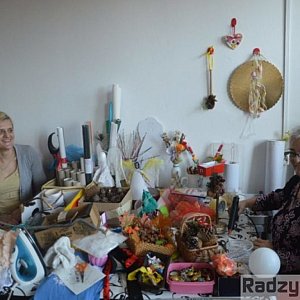 Przekraczam prób siedziby Radzyńskiego Stowarzyszenia Na Rzecz Osób Niepełnosprawnych przy Parkowej 2. Po wejściu, z lewej strony gospodarze zapraszają do domowego "pokoju kuchennego" z wygodną kanapą i dużym stołem, na którym na gościa czeka zawsze gorąca kawa lub herbata. Pani Sylwia Marczuk, prezes "Ósmego koloru tęczy", wraz z wiceprezesem, p. Kazimierzem wołają, pracujące na piętrze w pracowni, panie: Ewę i Marię, które po rozmowie "na dole" odwiedzę w ich królestwie.