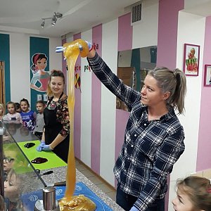 Dzieci miały okazję zobaczyć etapy powstawania słodyczy, a następnie każde dziecko własnoręcznie przygotowało swoje lizaki. Pełne wrażeń po odbytych warsztatach wybrały się na spacer po Starym Mieście. Podziwiały piękny Zamek i stare kamieniczki. Zachwyciła je również panorama miasta widziana z tarasu widokowego.