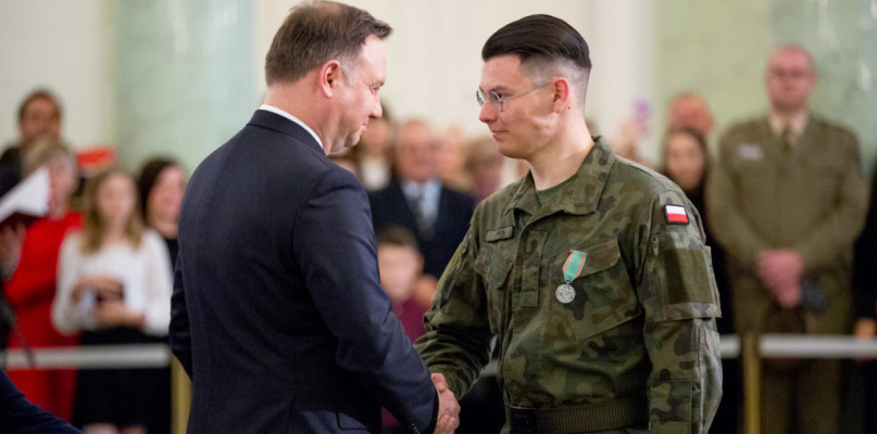 Szeregowy Szymon Duher - żołnierz lubelskiej brygady OT, odebrał w środę, 21 listopada br. z rąk Prezydenta RP Andrzeja Dudy Medal za Ofiarność i Odwagę. Medal stanowi nagrodę dla osób, które z narażeniem życia lub zdrowia ratowały życie ludzkie lub mienie. Szer. Szymon Duher jest pierwszym żołnierzem WOT, który odebrał tak cenne odznaczenie państwowe.
