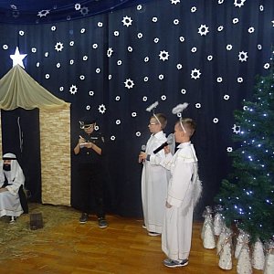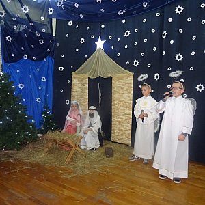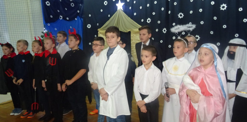 Spotkanie swoją obecnością zaszczycili: proboszcz parafii Gąsiory Piotr Trochimiak, władze gminne, emerytowani nauczyciele i pracownicy obsługi oraz rodzice. Dzieci z klasy IV i V zaprezentowały Jasełka pod kierunkiem pani Danuty Domańskiej-Guz. Przepiękną scenerię wykonała pani Katarzyna Łoniewska i Karolina Ostrowska. Oprawę muzyczną zapewnił pan Kamil Żurawski.