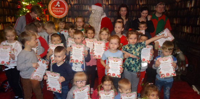 Serdecznie zostały przywitane przez Pomocników Świętego Mikołaja i zaproszone do pracowni plastycznej. Pod troskliwą opieką Elfów wykonały samodzielnie piękne choinki. Następnie spotkały się ze Świętym Mikołajem i mogły z nim porozmawiać, a także wspólnie śpiewać kolędy. Miały do Niego mnóstwo pytań.