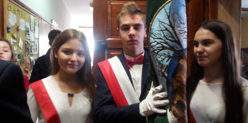 Na uroczystość przybyli pani Sekretarz Gminy Wohyń Agnieszka Buch, pani dyrektor Anna Teresa Kowalczyk, pani wicedyrektor Barbara Banaszczyk, opiekun Samorządu Uczniowskiego pani Iwona Babicz-Kalinowska oraz Poczet Sztandarowy (Anna Juszczyńska, Dorota Banachowicz, Przemysław Ładniak oraz Maja Kropiwiec, Kinga Grodek, Arkadiusz Samczuk).