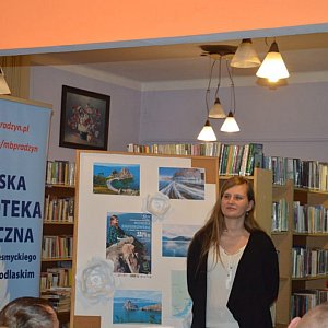 Autorka książki "Bajkał tam i z powrotem" opowiedziała radzyniakom historię swojej podróży. Jak sama podkreśla, nie jest podróżniczką, tylko archeologiem, jednak podróż, którą odbyła, wzbudziła niemałe zainteresowanie. Podczas krótkiego spotkania przewinęło się wiele interesujących historii, ciekawostek, a także miejscowych legend. Można było również nabyć książkę. Cała podróż zajęła naszemu gościowi pięć miesięcy. Słuchacze mieli okazję dowiedzieć się, jak w tym czasie wyglądało życie podróżniczki, co jadła oraz jakim środkiem komunikacji poruszała się najczęściej. Spała głównie pod namiotem i poruszała się autostopem, co pozwoliło na poznanie mieszkańców, a tym samym ich życia. Najdłuższa trasa autostopem, jaką przebyła, trwała trzy dni, co niewątpliwie było olbrzymią, a zarazem niecodzienną przygodą. Najwięcej uwagi poświęciła Bajkałowi. Jak sama mówiła, tutejsi mieszkańcy, Buriaci, uważają, że jest to morze, a nie jezioro. Na spotkaniu zobaczyliśmy drumlę, czyli metalowy instrument, który wkłada się w usta, szarpiąc palcem ruchomy języczek, zaś jego nieruchomą część najczęściej opiera się o zęby. Radzikowska mówiła również o Wierszynie, polskiej wiosce w Rosji, w której mieszkają Polacy mówiący gwarą małopolską bez akcentu rosyjskiego. Słuchacze mieli okazję poznać różne legendy, między innymi o powstaniu rzeki Katuń i Bii, która była bardzo ciekawa i wciągająca. Całe spotkanie było interesujące i pozwoliło na poznanie wielu ciekawych historii.