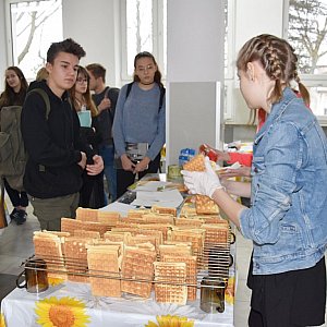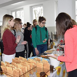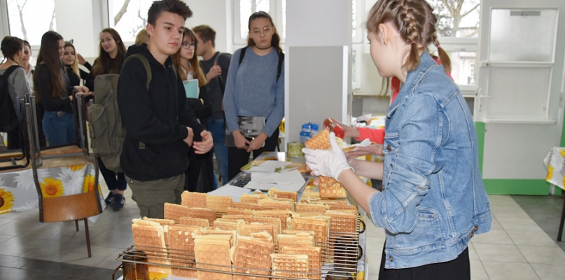 W dniu tym uczestnicy mogli spróbować gofrów. Częstowała m.in. przewodnicząca szkolnego samorządu, Małgorzata Fijałek.