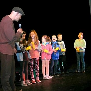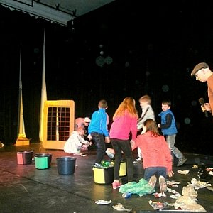 Za każdą aktywność na scenie dzieci dostały nagrody, a po spektaklu wszyscy otrzymali małe upominki ufudnowane przez Burmistrza Miasta Radzyń Podlaski. Nagrody i upominki opatrzone były logo "Radzyń segreguje"