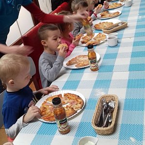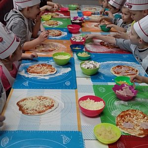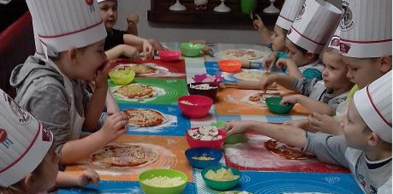 Dzieci miały okazję samodzielnie przygotować pizzę ze składników, które lubią. Czas oczekiwania podczas pieczenia wykorzystany był na wspólną zabawę. Degustacja odbyła się po kilkunastu minutach. Pracownicy lokalu zapewnili swoim małym gościom dzień pełen niespodzianek. Na pożegnanie każdy otrzymał puzzle, balonik, soczek i imienny dyplom ukończenia warsztatów.