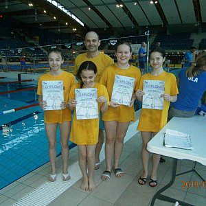 Sztafeta Dziewcząt, 4 x 50m st. dowolnym 12- 13 lat: Urszula Gepner, Martyna Muniowska, Laura Musiejuk, Julia Syta - 3. miejsce