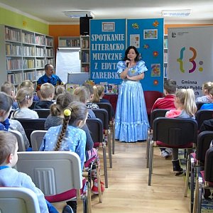 Pani Edyta Zarębska rozpoczęła spotkanie od opowieści o tym, w jaki sposób spełniło się jej wielkie marzenie z dzieciństwa, aby zostać pisarką. Następnie pan Robert Zarębski przeczytał i zainscenizował opowiadanie o myszce i kocie z książki "Opowieści babci Gruni". Dzieci miały możliwość udziału w odgadywaniu zagadek literackich i wypowiadania się do mikrofonu. Odbył się również pokaz ilustratorski. Uczniowie mieli możliwość uruchomienia swojej wyobraźni i odgadywania powstających rysunków myszki i ślimaka, które pani Edyta podarowała borkowskiej bibliotece.