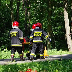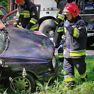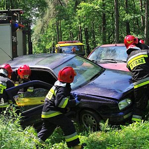 W wyniku zderzenia dwóch samochodów osobowych na drodze dojazdowej do drogi krajowej nr 63 w miejscowości Bezwola doszło do zderzenia dwóch samochodów osobowych w wyniku którego obrażenia odnieśli kierujący pojazdami. Obie osoby wymagają pomocy medycznej - obrażenia głowy, klatki piersiowej, wydobycie jednej z nich wymaga użycia sprzętu hydraulicznego. W czasie trwania interwencji doszło do zaprószenia ognia w budynku magazynowym z materiałami zaopatrzenia logistycznego o pow. kilkuset m2. Z uwagi na konieczność podawania środka gaśniczego z dużą intensywnością, konieczne jest zapewnienie odpowiedniej ilości sił i środków oraz zbudowania systemu dostarczania wody.