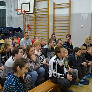 Później odbyło się spotkanie wychowanków internatu z członkami tego stowarzyszenia: panią Ewą Masłowską, panią Beatą Jastrzębską oraz panem Kamilem Mironiukiem. Gościnnie towarzyszyli im dogoterapeutka pani Monika Łobejko i lekarz weterynarii pan Kamil Dobek z przychodni "Levet".