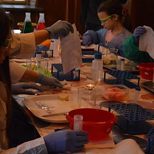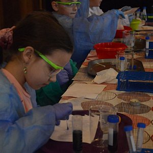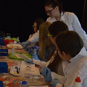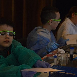 Kolejną atrakcją w piątkowy poranek, którą zapewnił Radzyński Ośrodek Kultury, były warsztaty laboratoryjne dla uczniów szkół podstawowych. Dzieci miały niezwykłą frajdę i zabawę. Ubrane w fartuchy i okulary zabezpieczające, wyglądały jak prawdziwi chemicy. Z zaciekawieniem i fascynacją wykonywały kolejne polecenia i odkrywały nowe, wcześniej im nieznane tajniki.