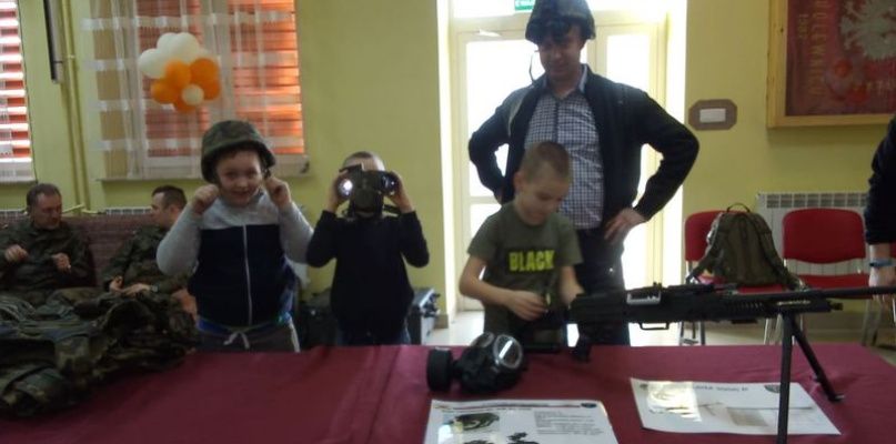 Dzięki panom ppor. Mariuszowi Baranowi, ppor. Łukaszowi Biegajle, st. chor. Marcinowi Matejkowi, szer. Markowi Kwoczce oraz st. szer. Arturowi Izdebskiemu dzieci odwiedzające wystawę miały możliwość nie tylko pooglądać, ale także przymierzyć, potrzymać czy popatrzeć przez lornetkę noktowizyjną. Chłopcom szczególnie podobała się możliwość potrzymania karabinu i wykonanie postawy strzeleckiej - leżącej. Omówiona została budowa broni. Wszyscy mogli przymierzyć kamizelki kuloodporne oraz hełmy żołnierskie.