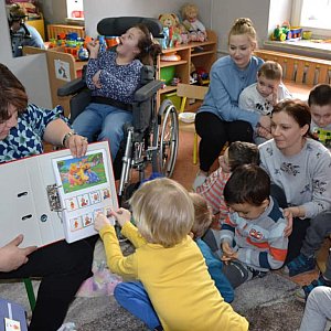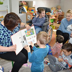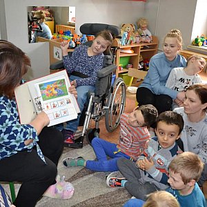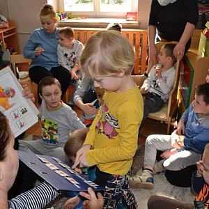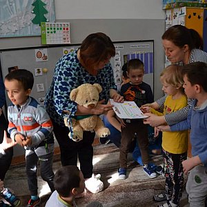 W związku z realizacją projektu edukacyjnego "Mały Miś w Świecie Wielkiej Literatury" - moduł "Czytające Przedszkolaki" zainaugurowaliśmy czytanie w przedszkolu. Gościem specjalnym była pani dyrektor Jolanta Purgał, która przeczytała nam książkę o Kubusiu Puchatku, wykorzystując metodę czytania uczestniczącego z symbolami PCS (specjalny system symboli używany przez logopedów). Będą jeszcze organizowane kolejne takie spotkania.