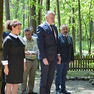 Pierwszym punktem wizyty było złożenie kwiatów oraz zapalenie zniczy pod pomnikiem upamiętniających pomordowanych żołnierzy AK na uroczysku Baran.