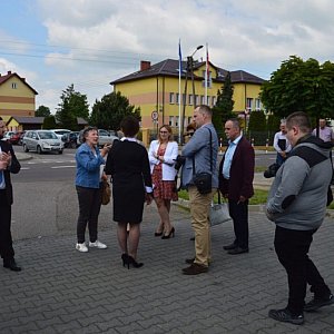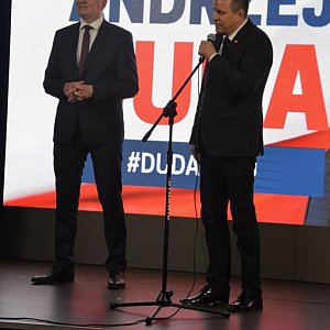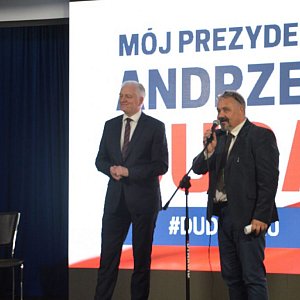 Przed częścią spotkania przeznaczoną na pytania głos zabrał starosta Szczepan Niebrzegowski. Podziękował on członkom powiatowego komitetu poparcia Andrzeja Dudy oraz członkom Radzyńskiego Stowarzyszenia Inicjatyw Lokalnych za organizację spotkania i zaapelował na kandydaturę Andrzeja Dudy.