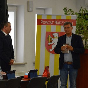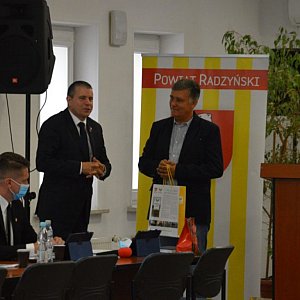 Na spotkaniu starosty z wójtami gmin powiatu radzyńskiego poruszono temat przyspieszenia starań o drogę kolejowa Lublin-Łuków w ramach programu Kolej+. Do Warszawy wpłynął już wniosek w sprawie elektryfikacji linii nr 30 i są duże szanse na realizację inwestycji. Kolejne projekty na przebudowę kolej będą realizowane podczas kolejnych etapów projektu. Przez czas pandemii starostwo, współpracując z Powiatoweym Urzędem Pracy pomogło w ramach Tarczy 4.0 wielu przedsiębiorcom. Starosta zachęcił także do korzystania z tej formy pomocy. Dodatkowo przekazał informacje, że w czasie miesiąca została zorganizowana pomoc dla osób niepełnosprawnych przez Tomasza Mańkę dzięki fundacji Joni and Friends International Disability Center mającej siedzibę w USA. Przekazano nieodpłatnie sprzęt w postaci: wózków inwalidzkich, kul, chodzików, balkoników, lasek, toreb na wózki inwalidzkie, koców i poduszek do siedzenia dla około 70 osób z terenu powiatu radzyńskiego. Otwarto także wypożyczalnię sprzętu dla osób niepełnosprawnych.