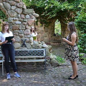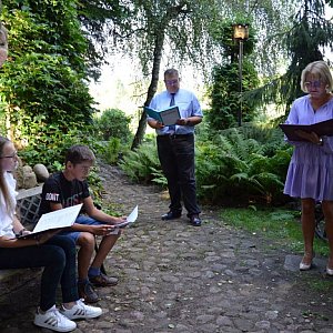 Organizatorzy i uczestnicy dziękują państwu Eleonorze i Zygmuntowi Adamczykom, bo w zakątkach ich ogrodu "Zielona" 17 poszczególne sceny znalazły piękną naturalną scenografię.
