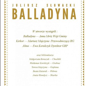 W Narodowym Czytaniu "Balladyny" w GBP w Kąkolewnicy uczestniczyła pani wójt Anna Mróz, przewodniczący Rady Gminy - Mariusz Majczyna, dyrektor GBP - Ewa Korulczyk, a także pozostałe osoby pracujące w bibliotece.