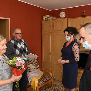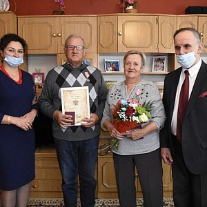 W dniach 20 i 21 października wójt gminy Kąkolewnica, Anna Mróz, oraz kierownik Urzędu Stanu Cywilnego, Sławomir Woch, odwiedzili wszystkich jubilatów, którzy w tym roku obchodzą 50-lecie pożycia małżeńskiego. Ze względu na sytuację epidemiologiczną zrezygnowano z wspólnej imprezy. Z okazji tego spotkania pani wójt odznaczyła pary małżeńskie medalami "Za długoletnie pożycie małżeńskie" przyznane przez prezydenta naszego kraju. Wszystkim 15 parom wręczono dyplomy, koce i wiązanki kwiatów. Jest wśród nich 5 małżeństw z Kąkolewnicy, 4 z Turowa, 3 z Grabowca, 2 z Polskowoli, 1 z Żakowoli Radzyńskiej.
