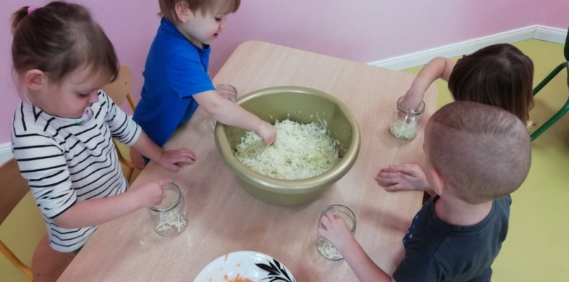 23 października w Niepublicznym Przedszkolu "Kacperek" odbyły się nietypowe zajęcia. Dzieci z grupy "Motylki" uczyły się kisić kapustę.