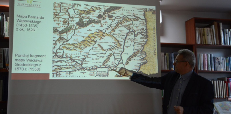 Wykładowca przybliżył zgromadzonym w bibliotece historię kartografii. Mapy w dzisiejszym rozumienia zaczęły się pojawiać w XVI wieku. Z początku były raczej ciekawostką, czymś w rodzaju graficznej ilustracji ówczesnej wiedzy. Dopiero z czasem zaczęły nabierać znaczenia praktycznego. Dawne mapy były niezbyt precyzyjne. Różnice między sposobem ukazania miejsca a jego faktycznym stanem potrafił sięgać 7 kilometrów, a w skrajnych przypadkach nawet do 30 kilometrów. Dopiero w miarę rozwoju kartografii mapy stawały się coraz bardziej precyzyjne.