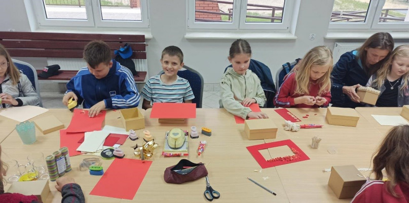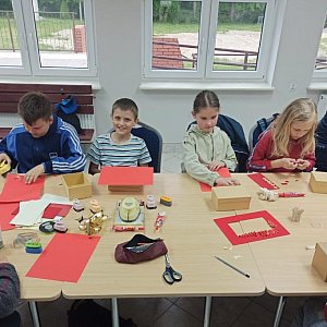 W poniedziałek 23 V w Branicy Radzyńskiej natomiast w środę 25 V w Żabikowie odbyły się zajęcia papieroplastyczne zdobienia pudełek prezentowych na Dzień Matki.