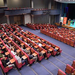 Po przerwie uczniowie i opiekunowie zebrali się w sali, aby wysłuchać wykładów przygotowanych przez opiekunów Roztoczańskiego Parku Narodowego i Poleskiego Parku Narodowego.