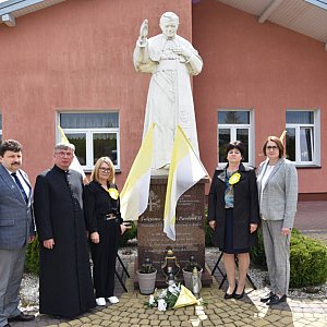 Delegacja złożona z uczniów, dyrekcji oraz zaproszonych gości udała się również pod pomnik świętego Jana Pawła II, aby złożyć kwiaty, zapalić znicze i pomodlić się za wstawiennictwem patrona.