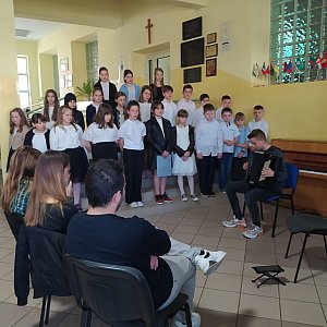 Wizytę tę uświetnił krótki montaż muzyczny przygotowany przez Elżbietę Tarasiuk. Pokazano też gościom kompleks boisk, murale, izbę tradycji, opowiedziano im ponadto o patronach szkoły, "Nagrodę za waleczność" - ideę jej powstania wraz z tablo uczniów, którzy ją otrzymali w roku szkolnym 2019/2020. Na koniec wizyty Zbigniew Smółko przedstawił najważniejsze fakty z dziejów Wohynia i społeczności lokalne, a zwłaszcza dzieje patronów szkoły - unitów podlaskich. Podczas przerwy goście zwiedzili kościółek w Bezwoli.