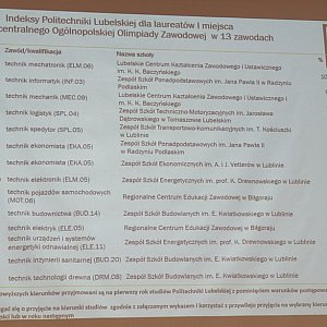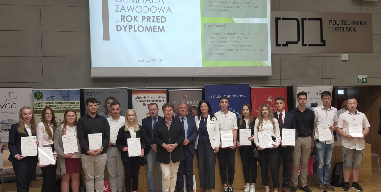 12 czerwca 2023 roku uczniowie Technikum w Zespole Szkół Ponadpodstawowych im. Jana Pawła II w Radzyniu Podlaskim wraz z dyrektorem szkoły dr Grażyną Dzidą oraz nauczycielką Moniką Kitlińską uczestniczyli w konferencji podsumowującej wyniki Ogólnopolskiej Olimpiady Zawodowej "Rok przed dyplomem", która odbyła się w auli Wydziału Mechanicznego Politechniki Lubelskiej.