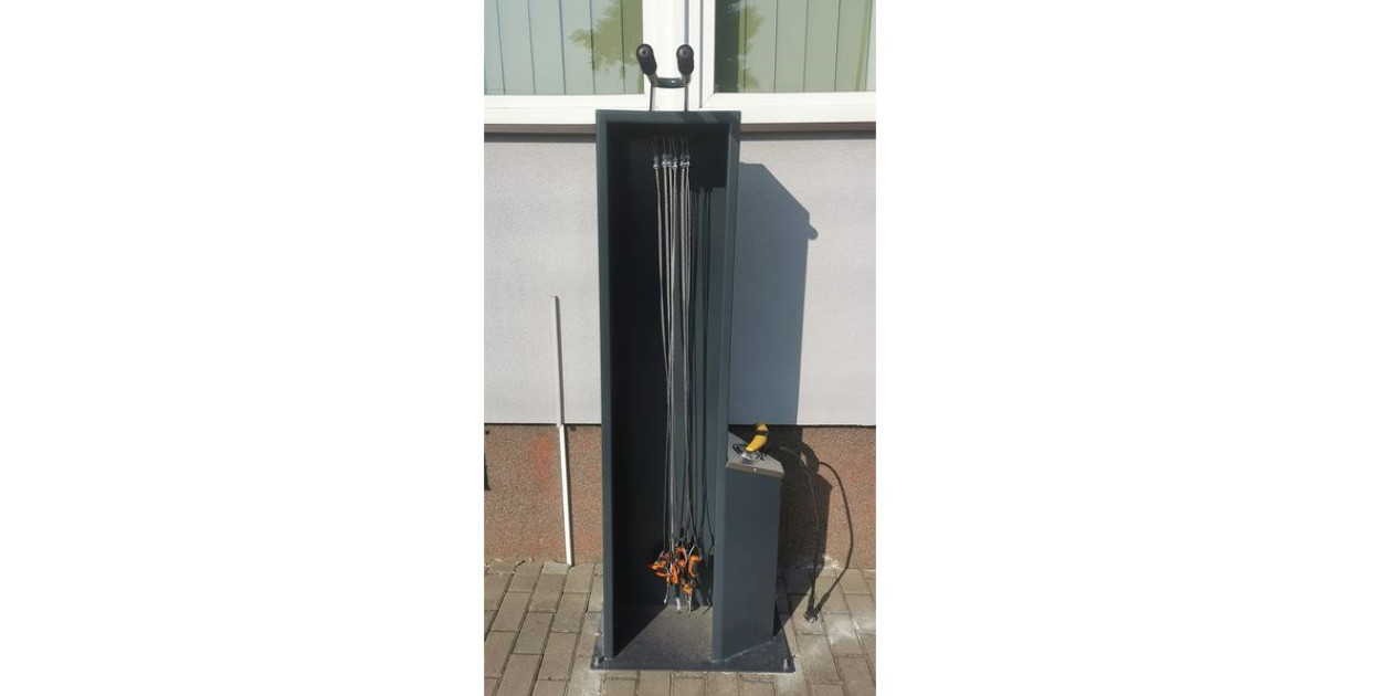 Urządzenie posiada zestaw narzędzi oraz pompkę rowerową. Możliwe jest również zawieszenie roweru na specjalnym uchwycie na czas naprawy.