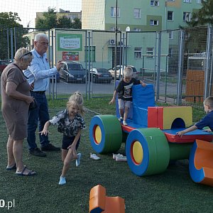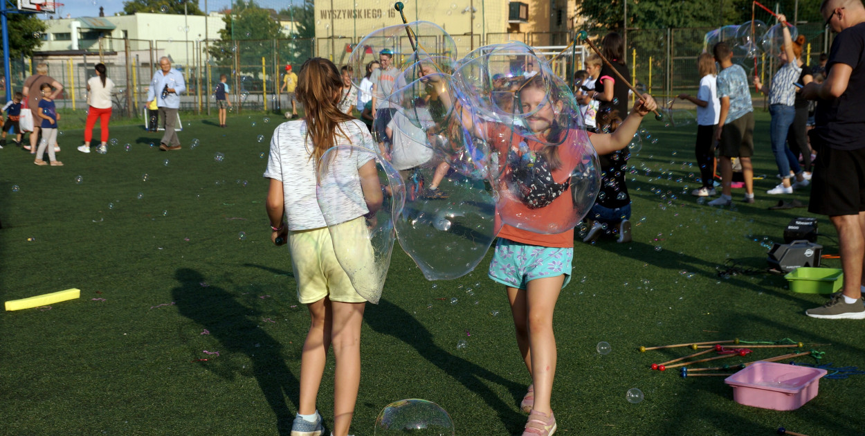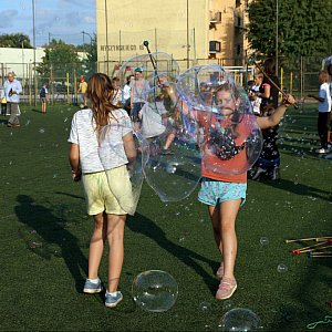 Wczoraj późnym popołudniem i wieczorem na boisku przy ul. Chmielowskiego w Radzyniu odbył się Festiwal Baniek Mydlanych. Wbrew nazwie na dzieci czekało nie tylko dmuchanie baniek mydlanych, ale także przeciąganie liny, zjeżdżanie z dmuchanej zjeżdżalni, strzelanie z łuku, jeżdżenie na rowerkach, utrzymywanie piłeczki oraz inne gry i zabawy. Po każdej konkurencji dzieci jako nagrody dostawały słodycze.