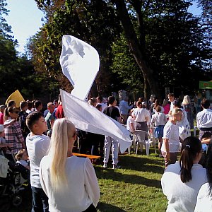 Organizatorzy XII Dni z Aniołami zadbali o oprawę artystyczną. Podczas Mszy grała grupa muzyczna, a dla dodatkowego efektu artystycznego podopieczni SOSW machali białymi i żółtymi chorągwiami.