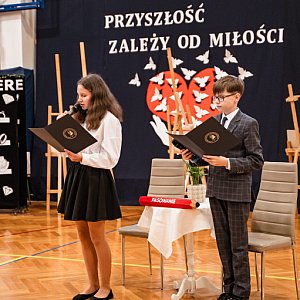 - Słowa Jana Pawła II kształtują nasze charaktery i podstawy. Patron tej szkoły jest godnym wzorem do naśladowania. Drodzy nauczyciele, życzę Wam by nigdy nie zabrakło Wam pasji do nauczania. Kochane dzieci, życzę abyście w życiu kierowali się wartościami jakie przekazał Jan Paweł II. Pamiętajcie o słowach Patrona Waszej szkoły "Wymagajcie od siebie choćby inni od was nie wymagali".