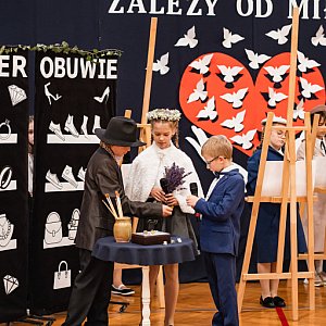 Na program uroczystości złożyły się Msza Święta oraz uroczysta akademia w sali gimnastycznej. W jej trakcie dzieci śpiewały pieśni i recytowały wiersze. Koło teatralne przedstawiło sztukę opartą na dramacie papieża "Przed sklepem jubilera". Uczniowie klas I doczekali się uroczystego pasowania na ucznia, po którym otrzymali upominki.