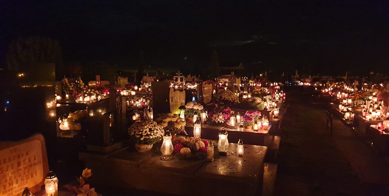 Prezentujemy zdjęcia wykonane wczoraj wieczorem (1 XI 2023 r.) na cmentarzu w Komarówce Podlaskiej.
