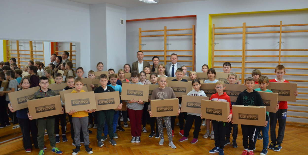 25 X 2023 r. odbyło się przekazanie laptopów 34 (uczęszczającym do czwartej klasy) uczniom Zespołu Szkół im. Jana Pawła w Ulanie-Majoracie w ramach rządowego programu "Laptop dla ucznia".